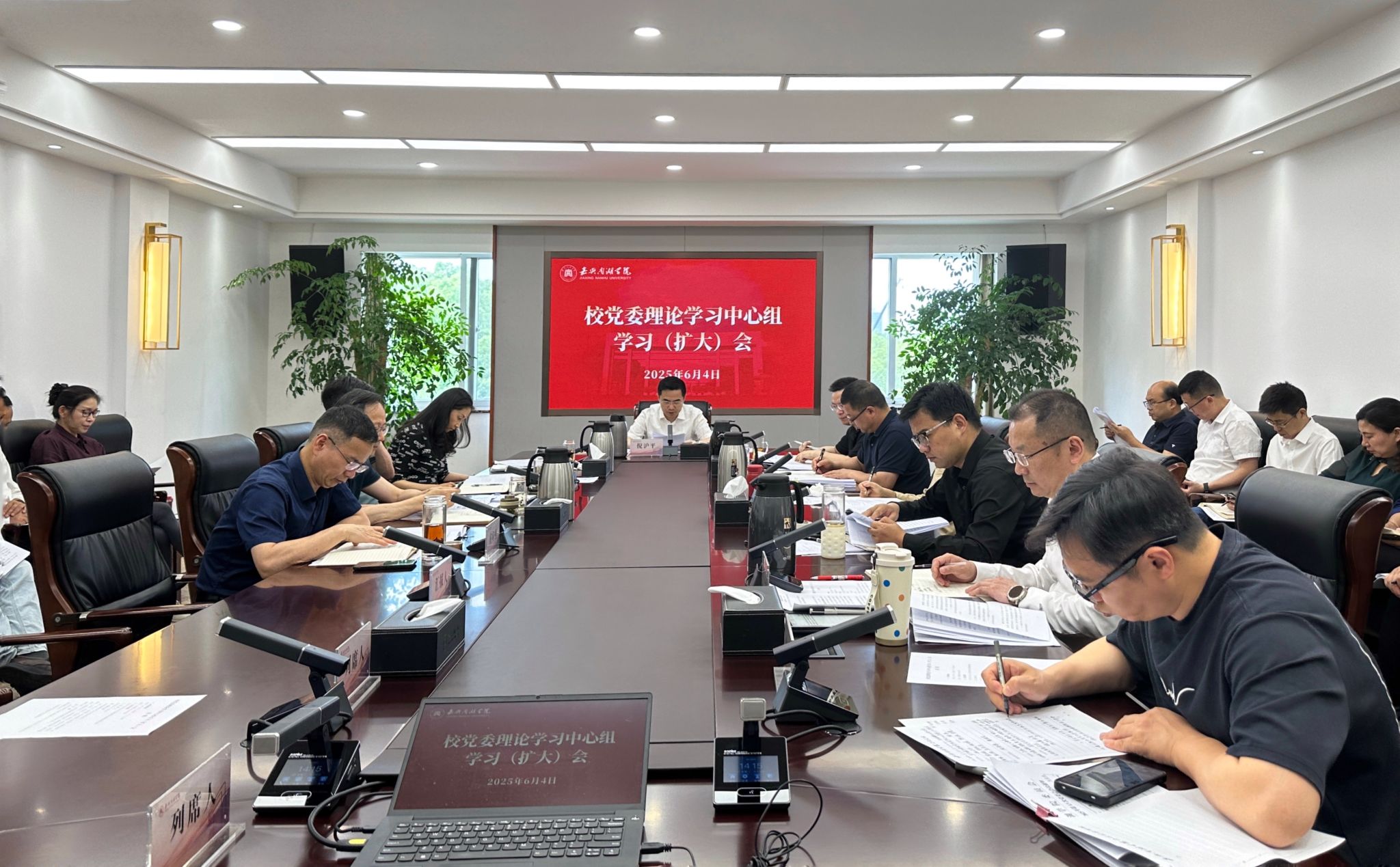 6月4日下午,校党委理论学习中心组在行政楼416会议室举行专题学习会,深入学习习近平总书记关于总体国家安全观的重要论述。校党委书记倪沪平主持会议并讲话,校党委副书记胡文蔚领学相关内容。
