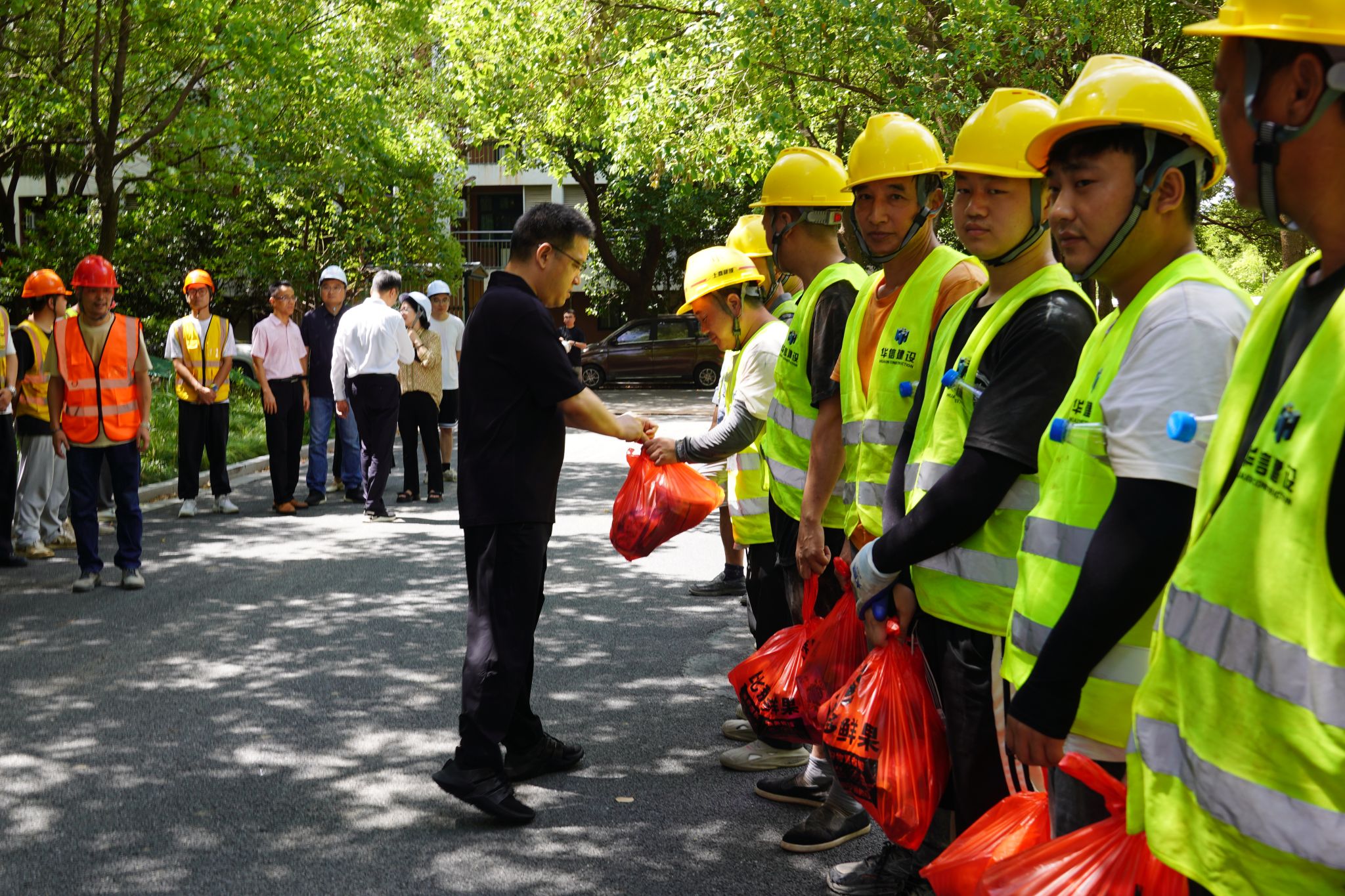 “大家都辛苦了”!春华苑食堂,校领导一行为后勤服务中心工作人员送去了清凉物资,鼓励大家要继续以高标准的服务和精细化的管理确保暑期在校师生的饮食健康。